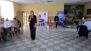Głównym punktem spotkania było omówienie przez prelegentów najbardziej podstępnych metod oszustw stosowanych wobec seniorów takich jak: